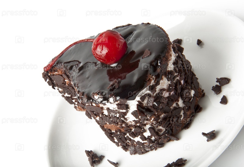 Шоколадное пироженое с ягодой вишни