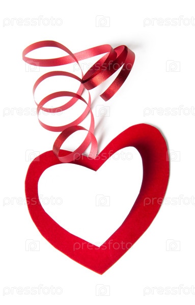 Бумажное сердечко с лентой на белом фоне