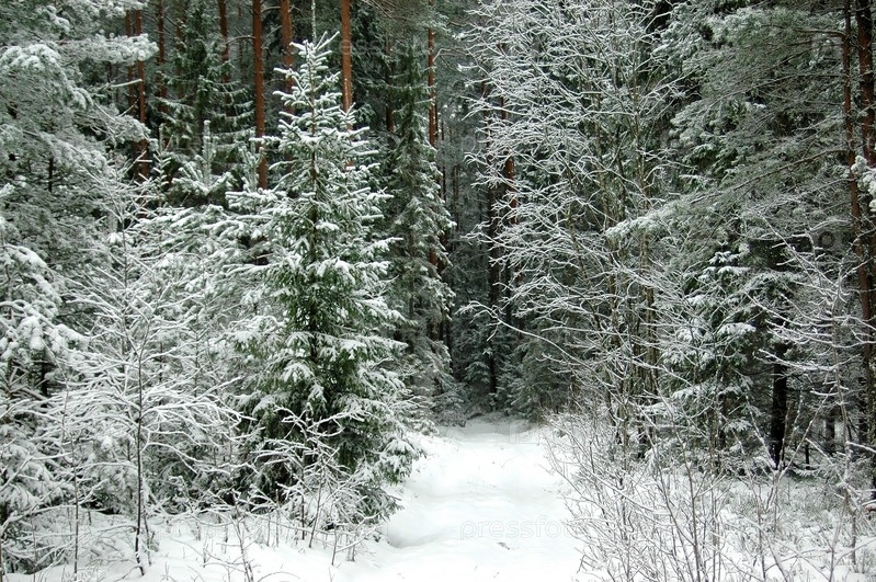 Зимний хвойный лес