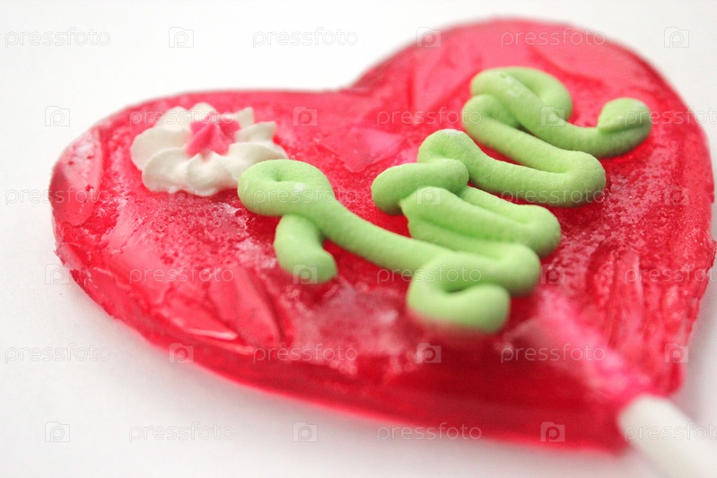 Леденец в форме сердца с надписью "Любовь"