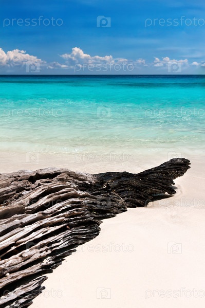 Размытая водой коряга на пляже Андаманского моря