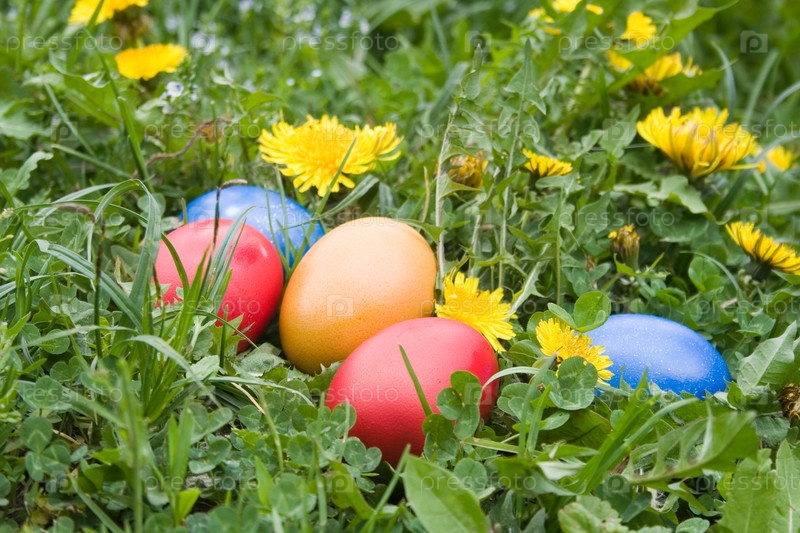 Цветные пасхальные яйца в траве