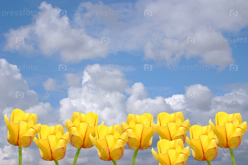 Желтые тюльпаны на фоне неба