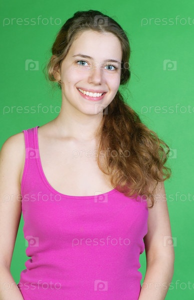 Портрет молодой красивой женщины на зеленом фоне