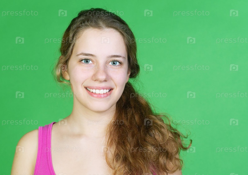 Портрет молодой красивой женщины на зеленом фоне