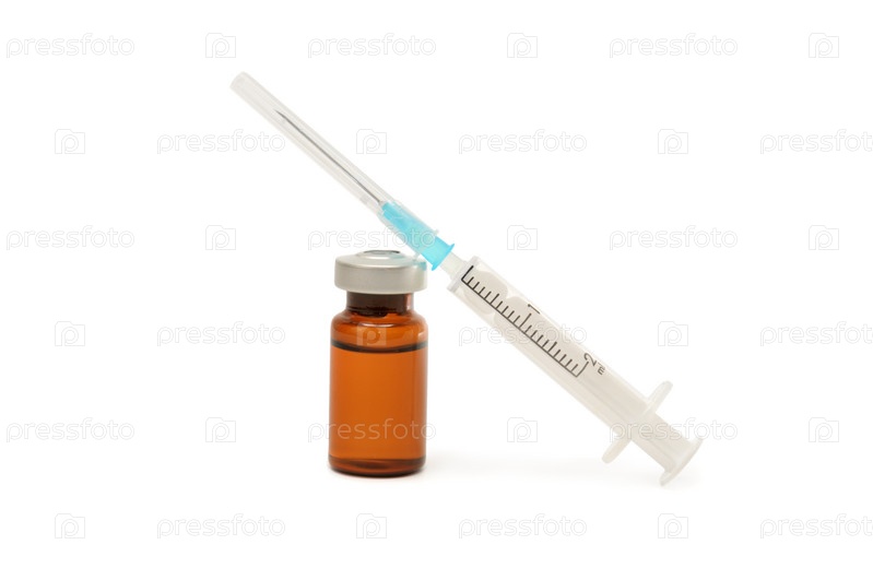 Ампула и шприц, изолированные на белом фоне