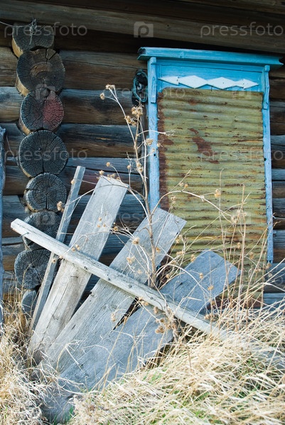 Заколоченное окно заброшенного дома. Село Преображенка, Тобольский район