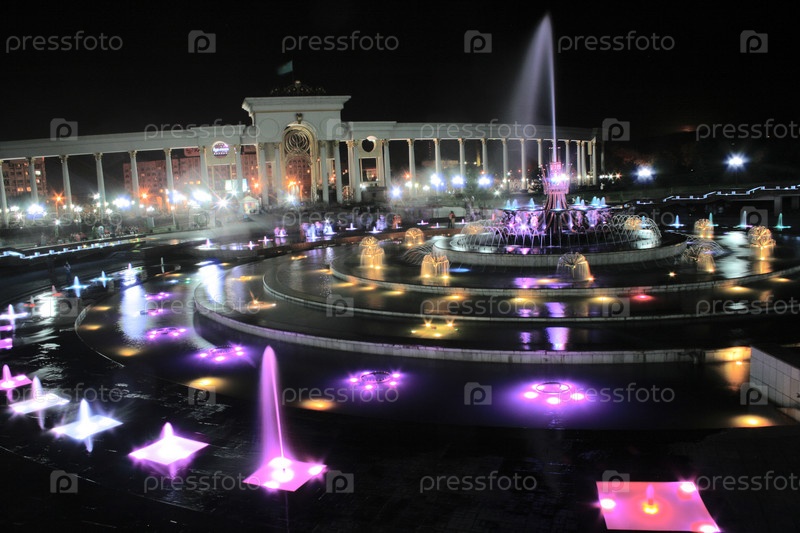 Фонтан на ночной площади