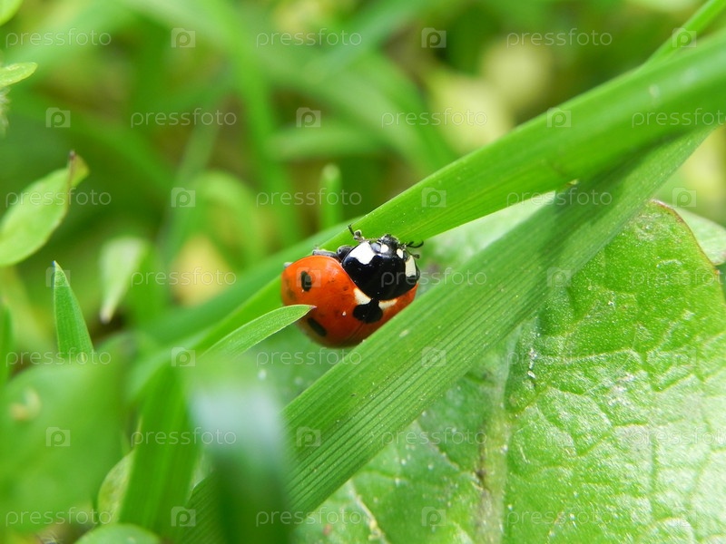 Божья коровка на траве