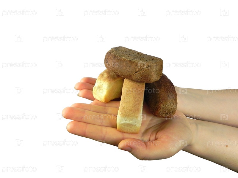 Кусочки ржаного и белого хлеба на руках