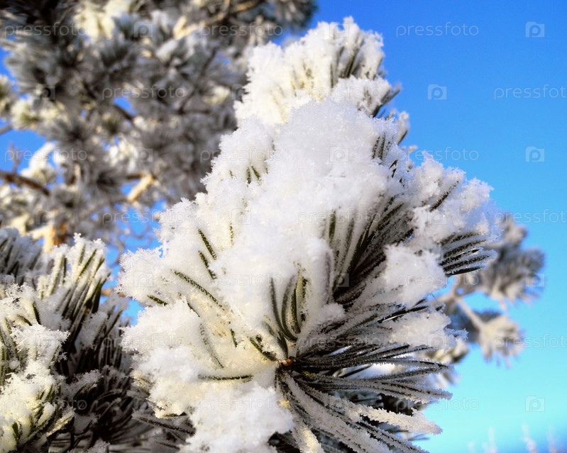 Мокрый снег на сосновых ветках