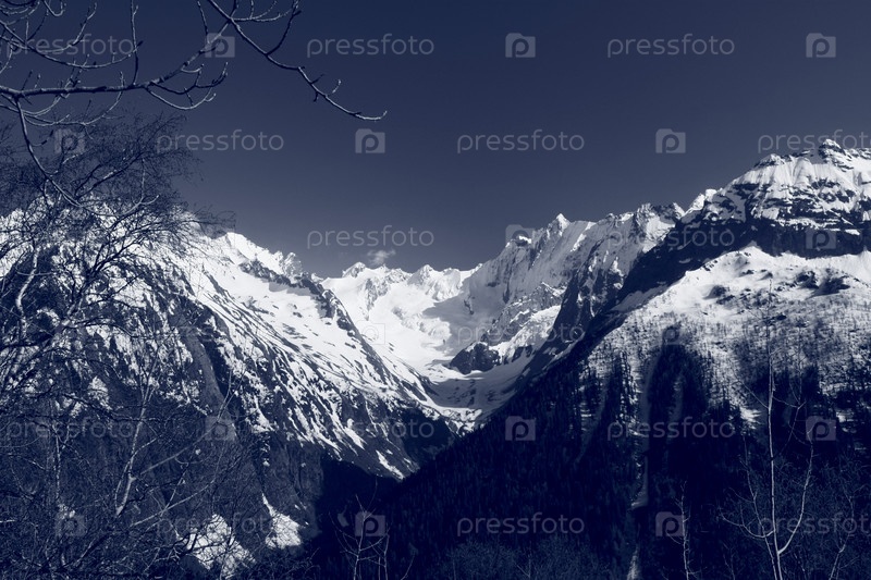 Белые горы Кавказа с градацией серого цвета