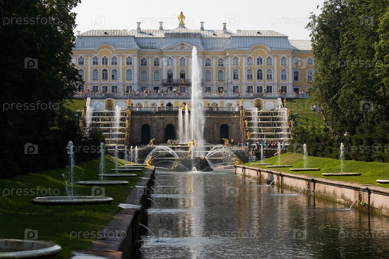 Большой дворец и фонтан "Самсон" в Петергофе летом, Санкт-Петербург, Россия