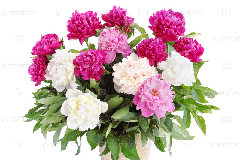 Большой букет из пионов на белом фоне