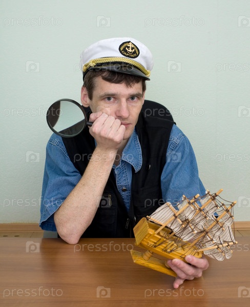 Грустный капитан с моделью корабля
