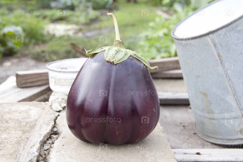 Спелый баклажан на даче