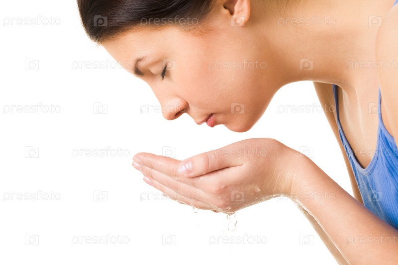Профиль свежей женщины, моющей лицо
