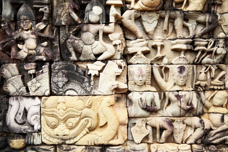 Каменная резьба древних кхмеров в Ангкоре, Камбоджа