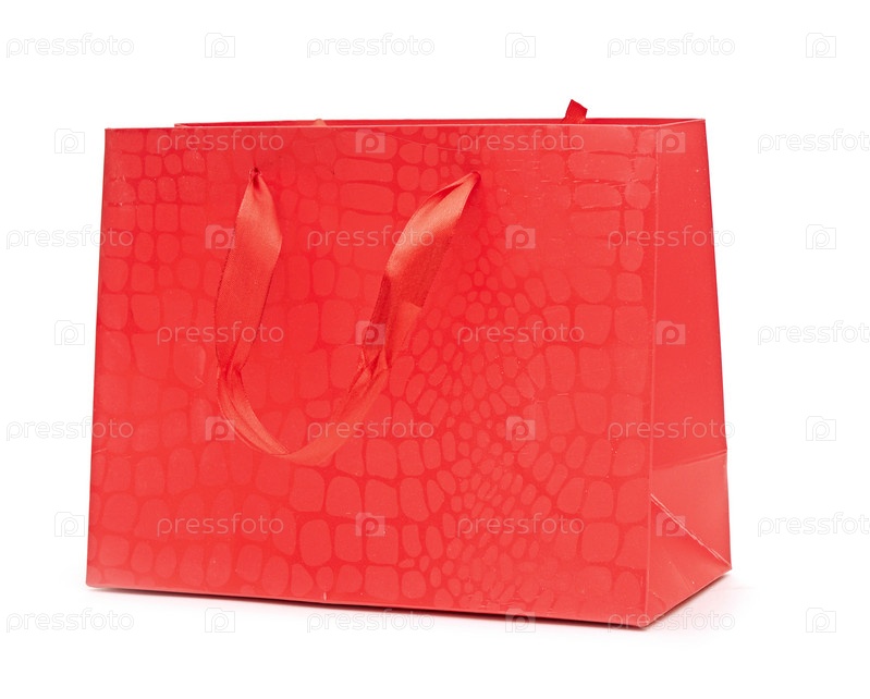Красный пакет для покупок, изолирован на белом фоне