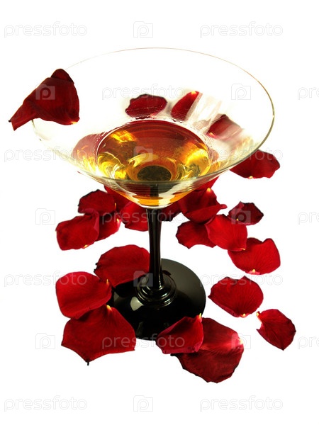 Бокал и лепестки роз