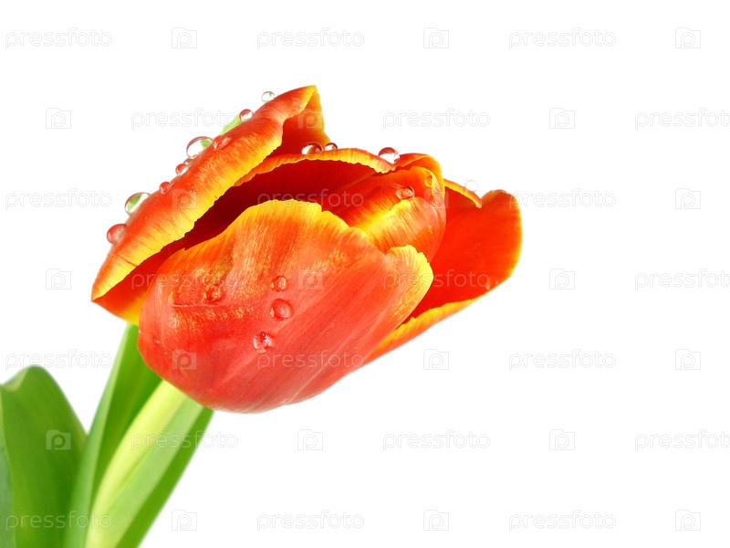 Тюльпан в каплях воды крупным планом