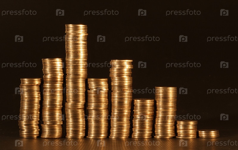 Золотые монеты на черном фоне