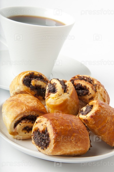 Сладкие рулетики и чашка кофе