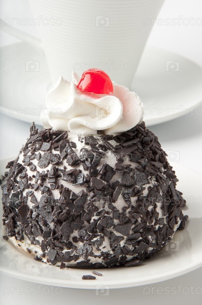 Пирожное с шоколадкой крошкой крупным планом