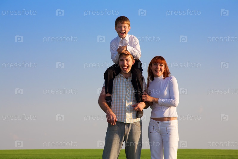 Портрет счастливой семьи на свежем воздухе