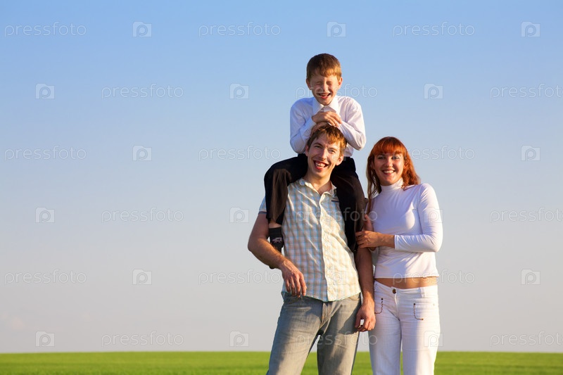 Портрет счастливой семьи на свежем воздухе