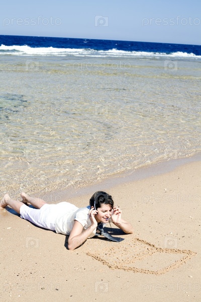 Девушка с гарнитурой на берегу моря