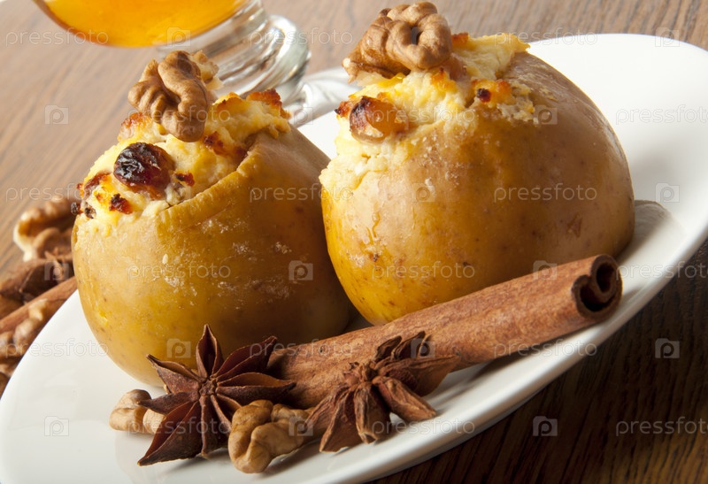 Печеные яблоки с корицей и грецкими орехами