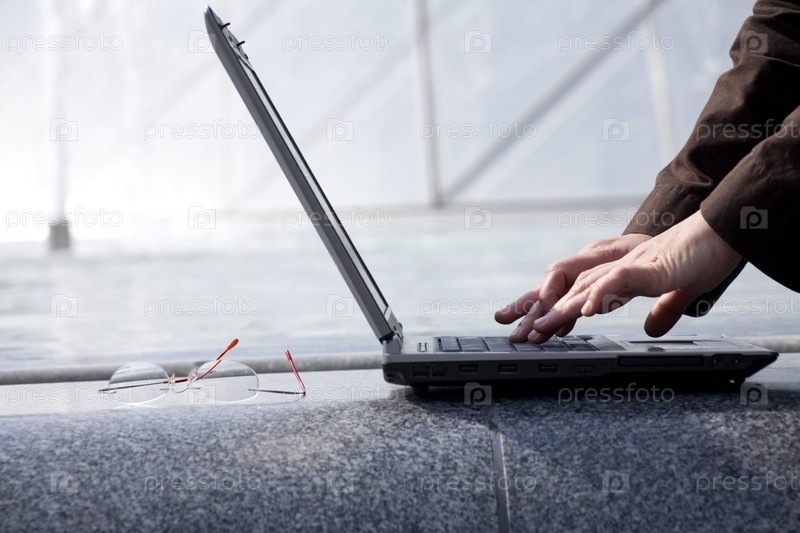 Мужские руки работают на ноутбуке