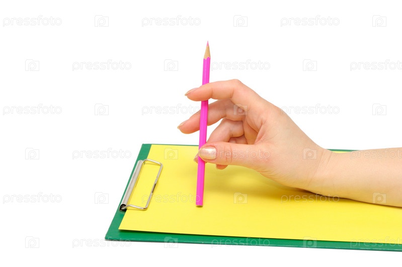 Бумага для записи и рука на белом фоне