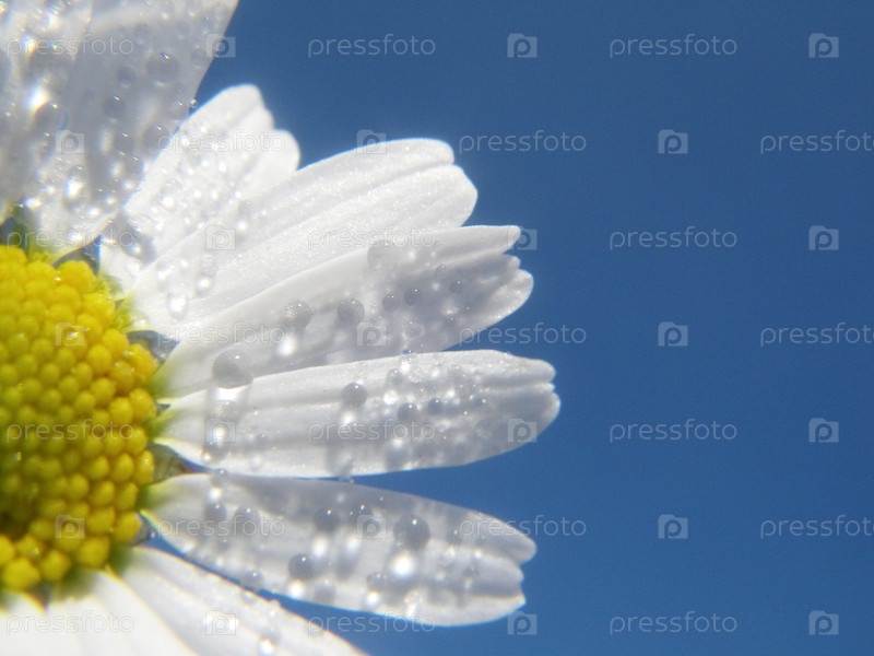 Ромашка с каплями воды крупным планом