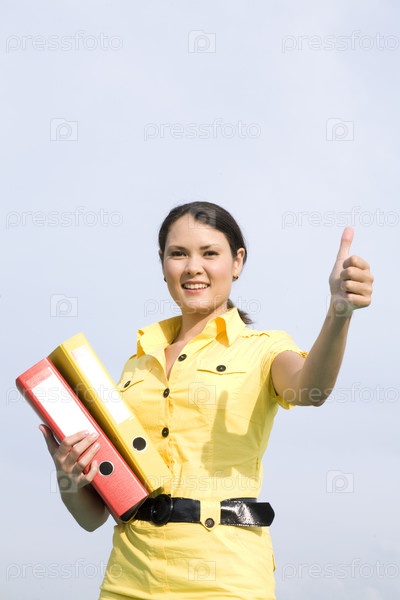 Молодая бизнес-леди с канцелярскими папками