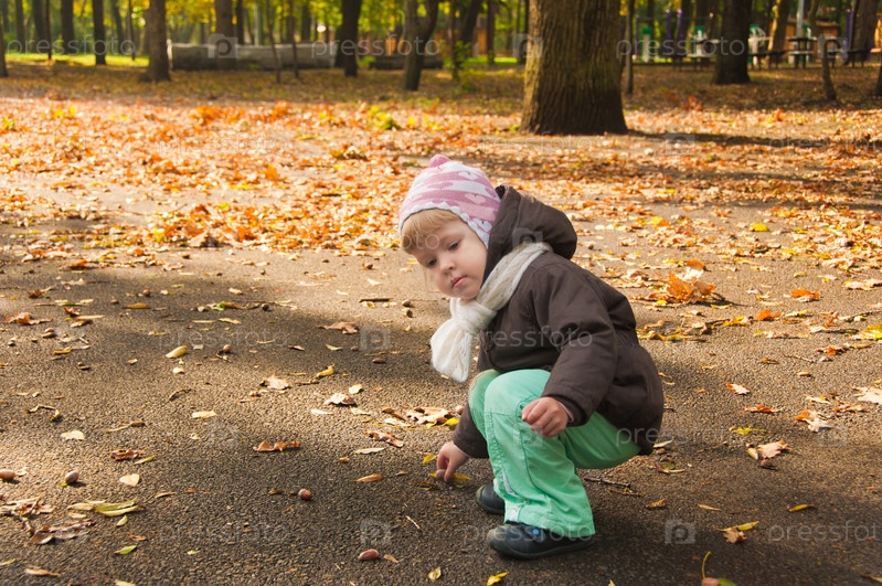 Маленький ребенок гуляет в осеннем парке