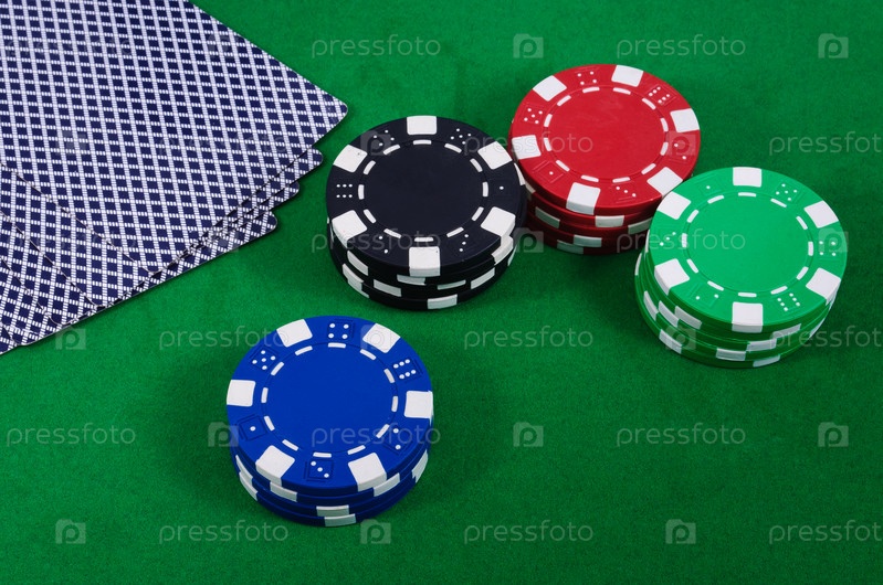 Колода карт и фишки на зеленом сукне