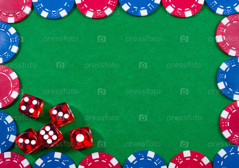 Рамка из фишек и костей на зеленом сукне с местом для текста