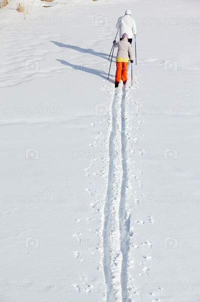 Пара лыжников на лыжне