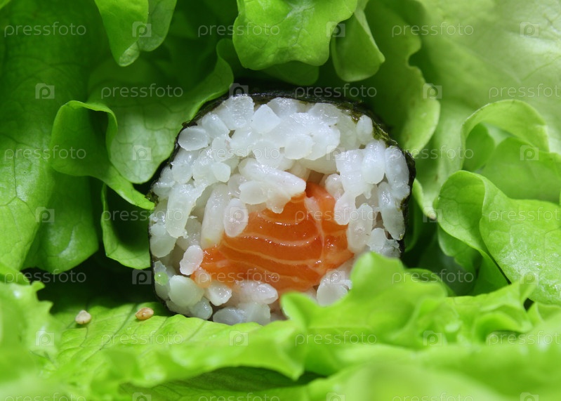 Суши на листьях салата