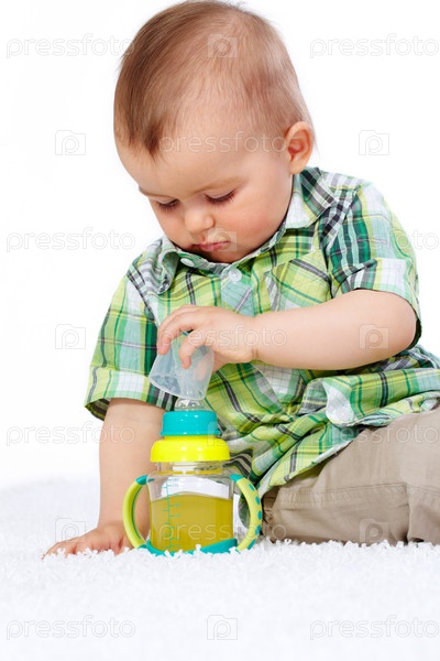 Малыш с детской бутылочкой