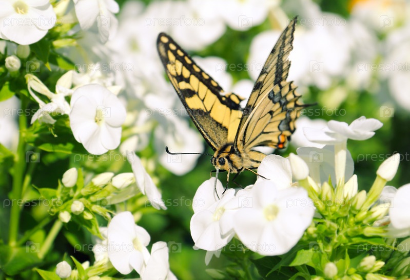 Бабочка-махаон на белом флоксе