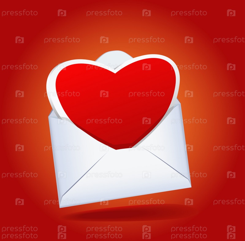 Сердце и почтовый конверт на красном фоне