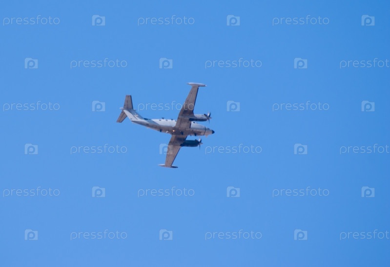 Самолет в полете на фоне голубого неба