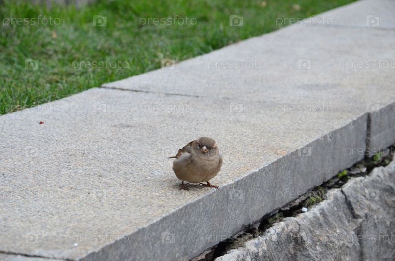 Воробей сидит на парапете