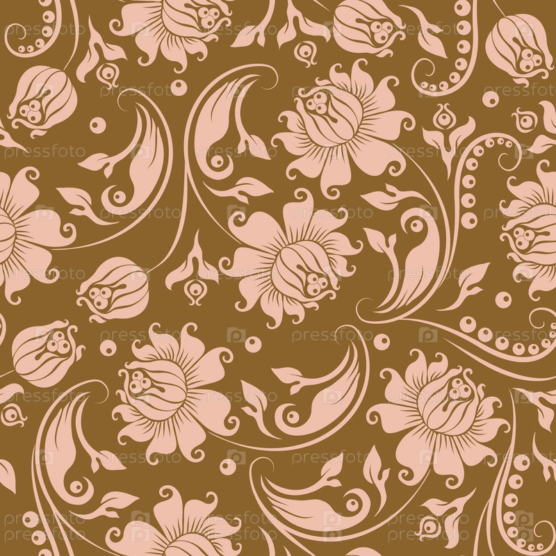 Светлые цветы на золотом фоне. Бесшовный фон