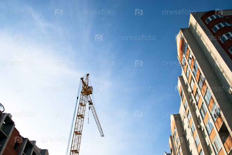 Кран и новостройки на фоне голубого неба