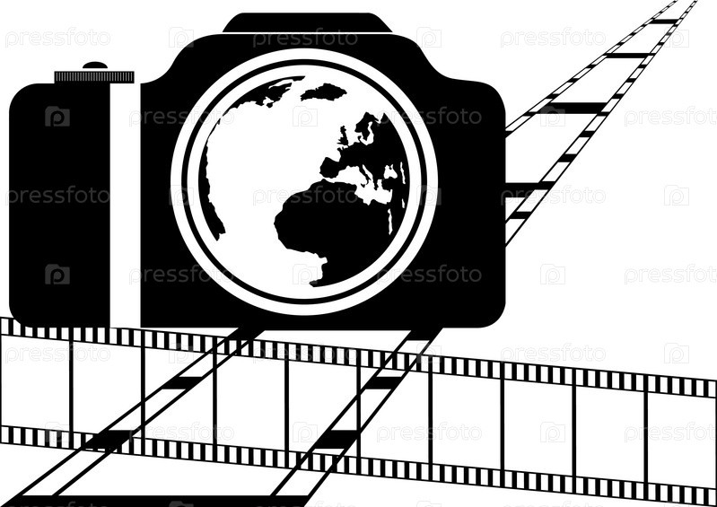 Изображение фотопленки и фотоаппарата на белом фоне