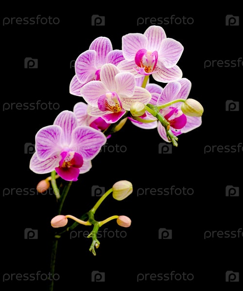 Ветка розовой орхиди (Фаленопсис) на черном фоне